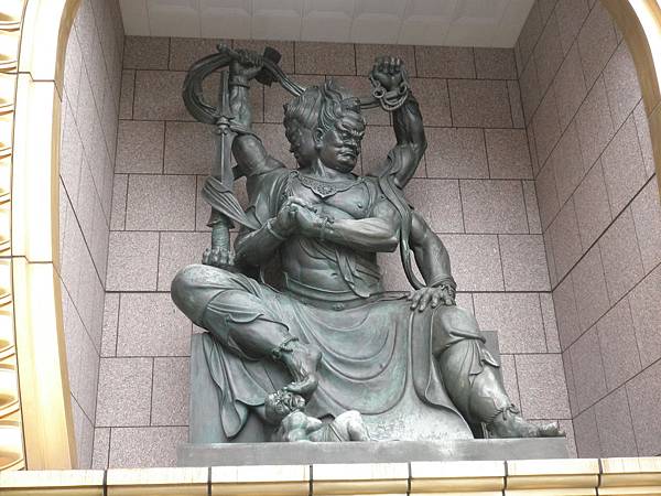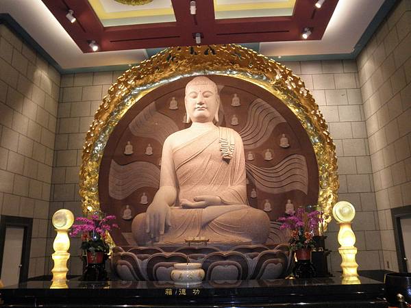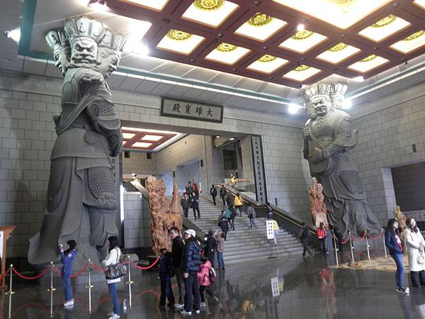 一進去小山門之後便看見蓮花池與同源橋,向上走便是這 台灣最大、最高的佛教寺廟 ,在門口迎客的是 彌勒佛來,進去後是 「四天王殿」,以“山西黑花崗岩”雕製的四大天王, 佇立在四個牆角,相當雄偉狀觀,而後直上階梯便可達「大雄寶殿」,一尊由“印度紅花崗岩”雕琢而成的「釋迦牟尼佛」,鎮坐於大殿中央 , 在大雄寶殿右側脅侍殿中 的是 關公, 左側脅侍殿中端坐的是中國禪宗初祖「達摩祖師」