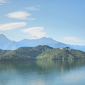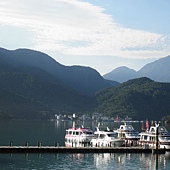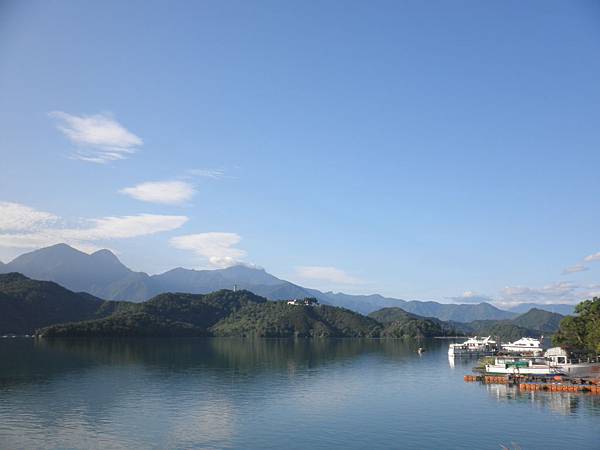 從 清晨的朝霧碼頭開始,朝霧碼頭由於碼頭面向東面,所以在日月潭是個賞日出的好地點, 由於清晨時常霧氣瀰漫,而有嵐霧之美,朝霧碼頭的名稱,也就由此而來,這邊也是每年一度的日月潭萬人泳渡的起點,終點是3.3公里遠的伊達紹碼頭,清晨的 朝霧美的令人驚嘆, 藍天白雲,寧靜的湖面,遠處的青山,製造出一幕幕迷人的光景。