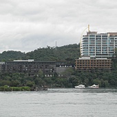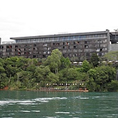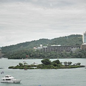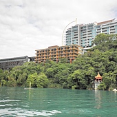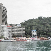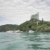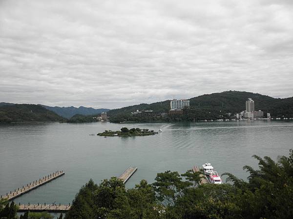 上了遊艇,回頭看滿是遊艇的水社碼頭,再從湖上觀賞 涵碧樓,近看 拉魯島。