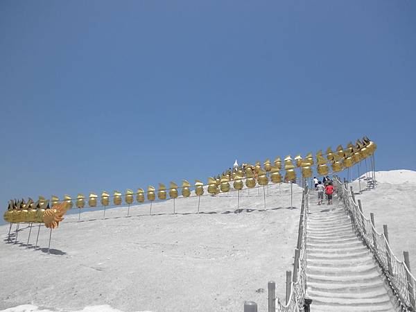 七股鹽山,我以前的印象就一座鹽山,旁邊賣冰淇淋,並不是一個很好的遊玩景點,現在新增了很多遊玩的設施,又有鹽雕展,稍微增加些可看性,可惜當天氣太熱,很少人玩,不過冰淇淋與鹽滷產品倒是可以吃ㄧ下。