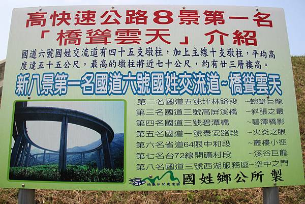 經過景點有台灣最美的高速公路,國姓交流道「橋聳雲天」