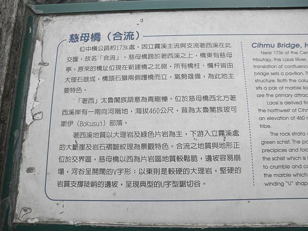 特別天祥到太魯閣 是整個精華所在,其中的景點有 岳王亭、慈母橋(青蛙石)、九曲洞、燕子口、長春祠,