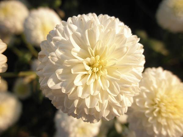頭狀花序直徑約 2~3 公分,單個或數個集生於莖枝頂端;萼片內外兩層,每層 3 片,外層 3 片交疊於內層 3 片中間,共 6 片;總苞片多層,外層綠色,條形,邊緣膜質,外面被柔毛;舌狀花白色、紅色、紫色或黃色,大小總數約 270 片。花期 9~12 月。