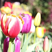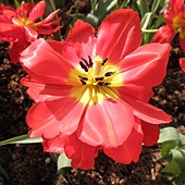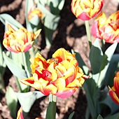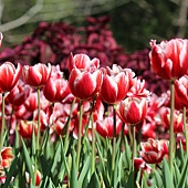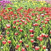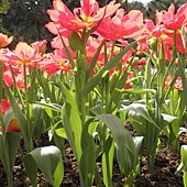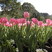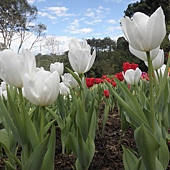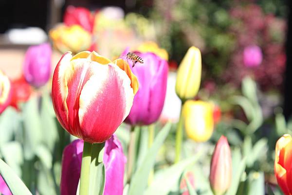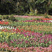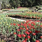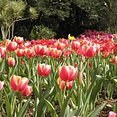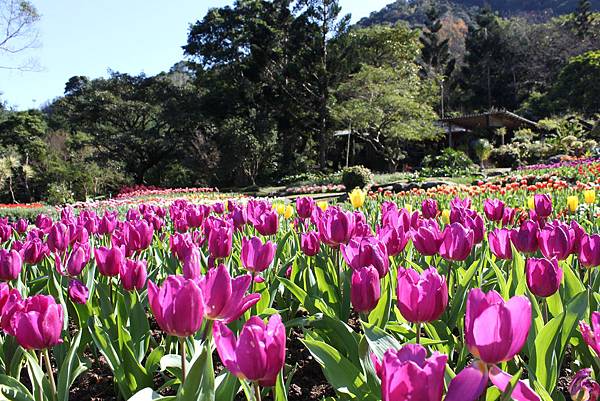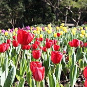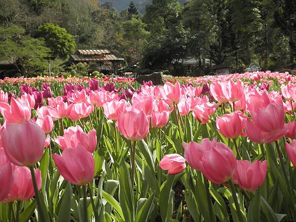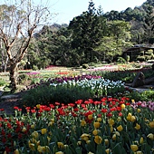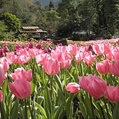 但當天櫻花都還沒開,梅花經過前幾天下雨的摧殘,也都稀稀落落,另外有一大堆不怎樣的奇石,走完桃源仙谷全區,應該就彩虹花田最值得一看。當天人不多,在彩虹花田看著藍天、白雲、鬱金香,吃著鮭魚餐,很享受。(鮭魚餐:其它的配菜都不行,但主菜鮭魚還OK )