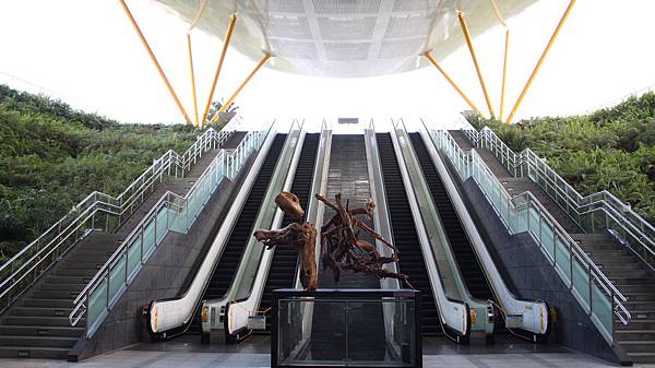 為使本站更具特色,特委請英國著名之景觀建築師Richard Rogers將本站體融入中央公園之整體規劃,將陽光與寧靜自公園引入地下站體,使旅客一出車站大廳即可享受原始森林般的清新綠意,而為展現本站體雄偉磅 礡之氣勢,其出入口更採輕巧之組構方式及金屬材質,充分展現結構力學與美學,襯托出「飛揚」之設計意象,仿佛飛揚地宣告高雄市就此起飛、茁壯。