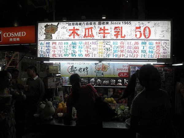 六合夜市的美食:六合陳木瓜牛奶、鄭老牌木瓜牛奶、巨無霸章魚腳(普通)、土耳其冰淇淋、海產粥、肉圓 & 割包(不錯)、東山鴨頭…….. 六合夜市這邊觀光客比台灣人多。