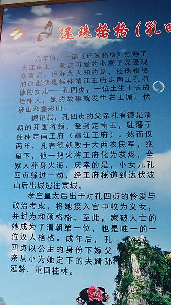 伏波山,位於灕江之濱,漢代伏波將軍馬援南征曾經於此,故得名,伏波山下有伏波將軍馬援的銅像,將軍怒射,馬蹄淩空。遊人一般在次留影為念。山上有還珠洞(又名伏波岩)、試劍石、千佛岩(即千佛洞)、千人鍋、大鐵鐘還有唐宋以來的石刻文物。