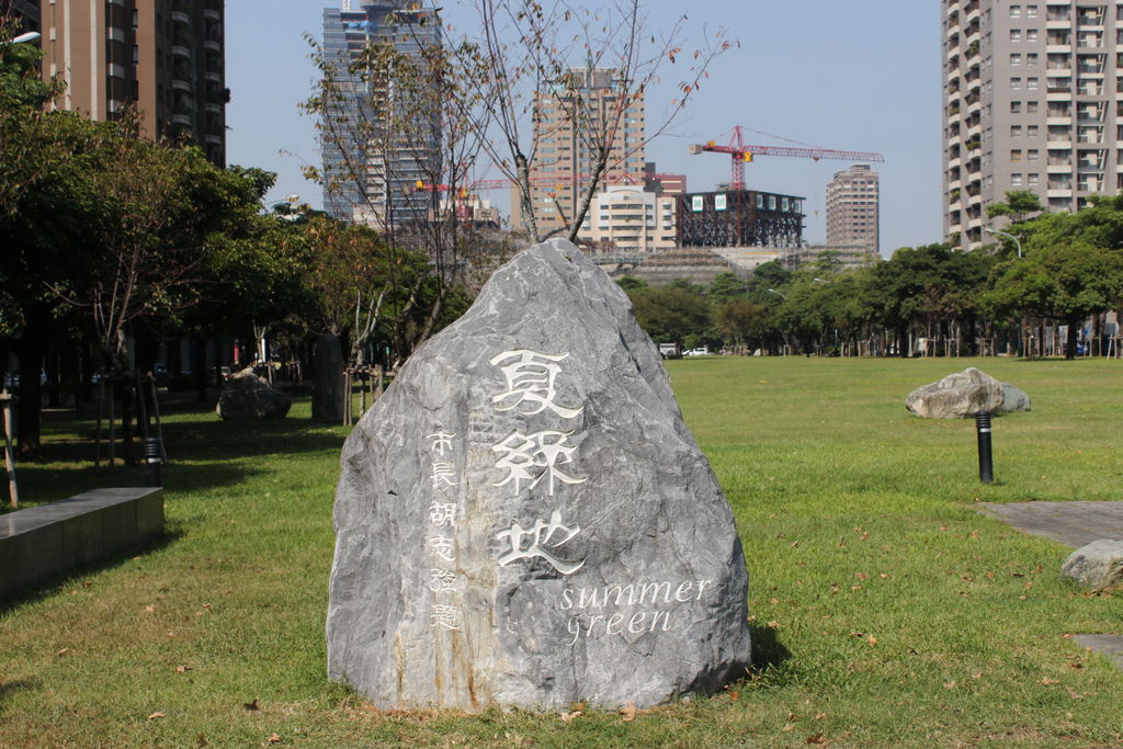 擁有八公頃綠地,亦是民眾約會、休憩園地之綠地廣場,長期以來卻無一個適合名字來稱呼;市長胡志強有感這片綠油油、生意盎然的綠地,像極了台中從容不迫的寫意生活,因此將這片廣場正式命名為「夏綠地」(SummerGreen)。