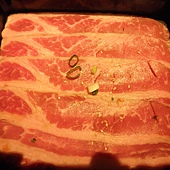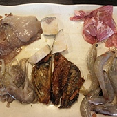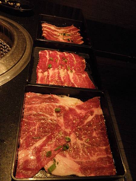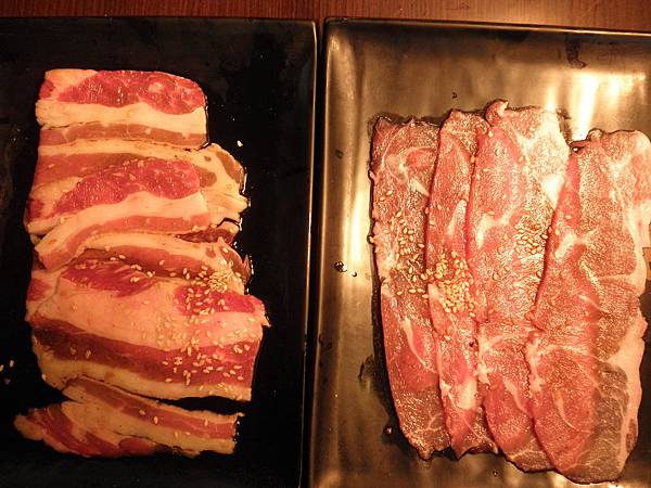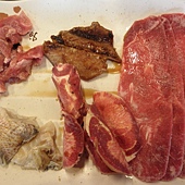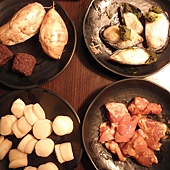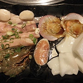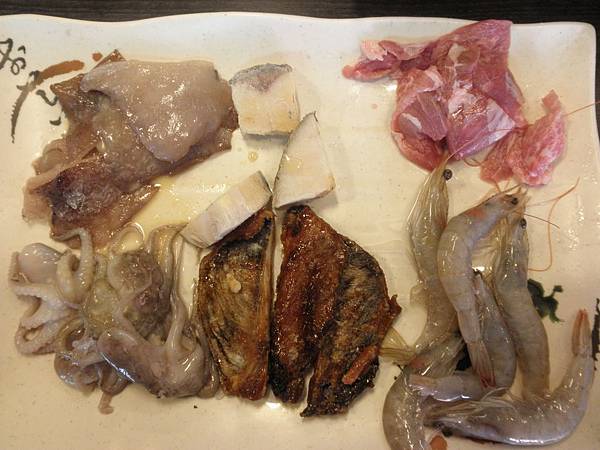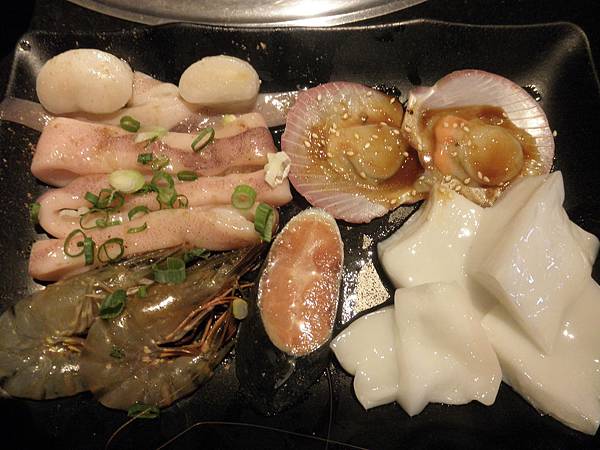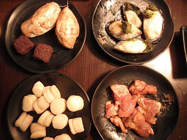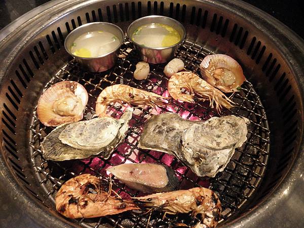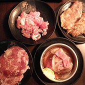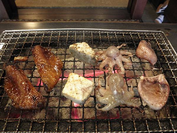霜降牛、豬梅花肉、煙燻培根、蒲鰻串( 雖然菜單寫蒲鰻串,但應該是鯛魚腹才對,現在鰻魚超貴的, 且吃起來也沒刺 )、 花枝、小章魚、麻糬 (以前來這邊烤肉,邊吃麻糬蠻特別的,而且也不錯吃,不過現在的燒烤店好像都增加麻糬這道料理了,就沒那麼特別 )