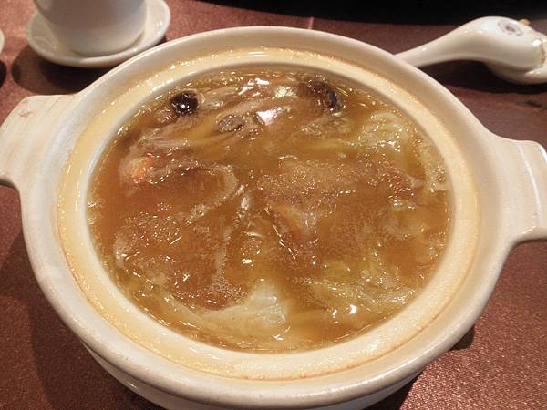 回主題 養生濃湯排翅套餐(一張588)及養顏干貝花膠肚套餐(一張388),含甜點、水果共九道菜色,但除了主菜不同其餘八道菜皆相同,其中著名的菜色 富貴雙方、生菜蝦鬆、左宗棠雞都有出來。養顏干貝花膠肚套餐(388)CP值就還OK,養生濃湯排翅套餐(588)除非你特別喜歡吃魚翅,否則並不划算。