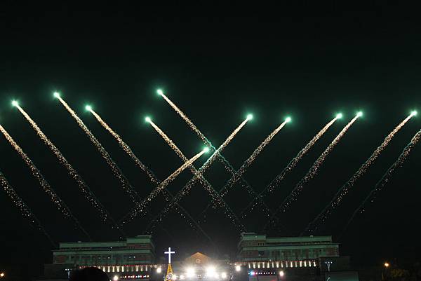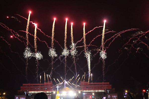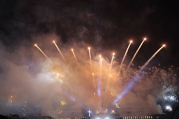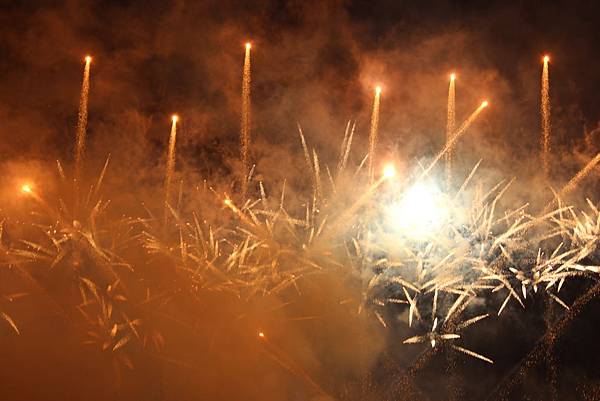 各處都是攤販,搞的像夜市一樣,我晚上10點才出發,人超多的擠不到裏面,只好在外圍看大營幕;這次煙火整體效果不錯,看照片可能看不出來,可再觀賞我錄其中一分鐘的影像。