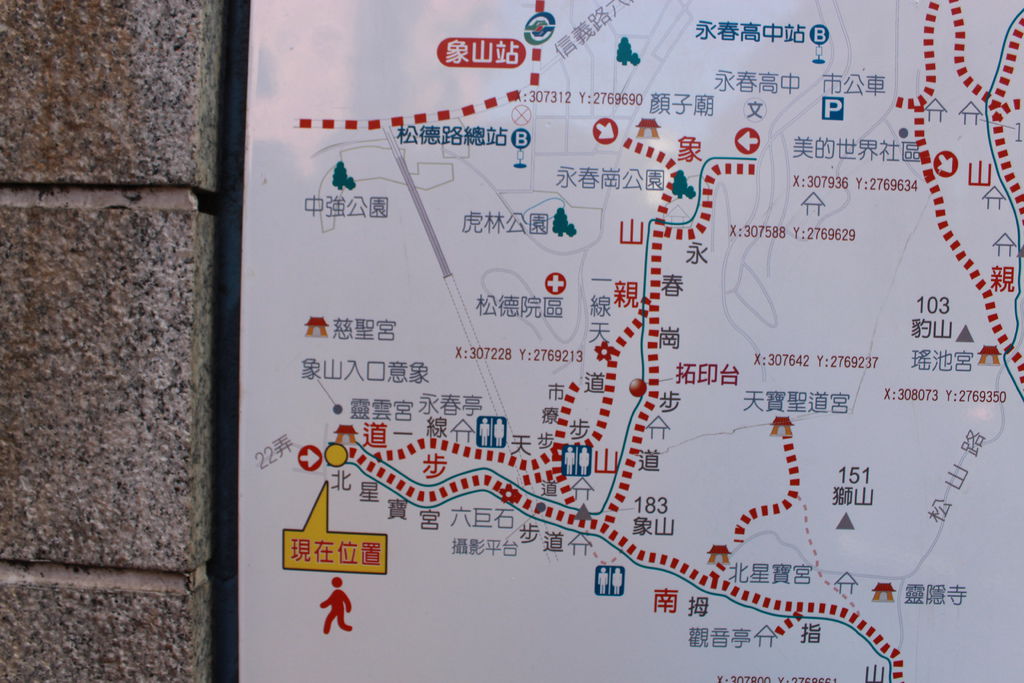 從捷運象山站下車, 經過中強公園, 便可到達象山 靈雲宮登山口。