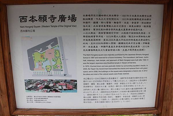 二次大戰結束後,「西本願寺」曾做為警備總司令部、大陸與中南部移民聚居、「中華理教總會」,記錄了臺北的政治、都市移民與宗教歷史。不過「西本願寺」1975年,曾因遭逢大火燒毀沉寂,後 續在都市違章建築中隱沒,直到2005年,北市府拆除違建、並且簡易綠化。