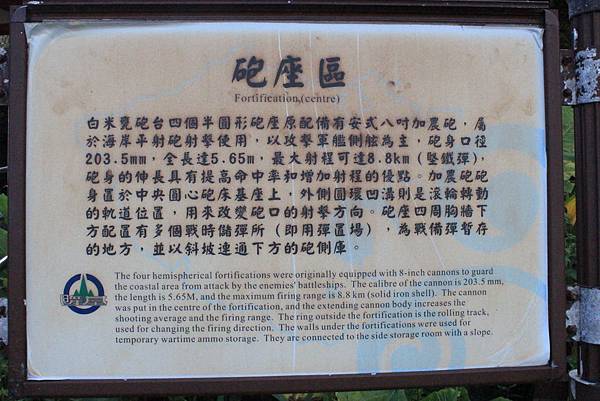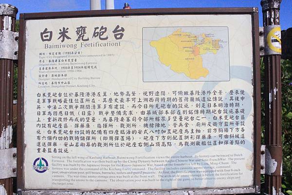 白米甕砲台為一字排開的配置,由左而右為指揮所、四個砲座、觀測台一字並列面對海上,乃台灣現存砲台中唯一的形制,而指揮所及觀測台則分置於左右兩側的山丘上,視野遼闊,可俯瞰基隆港內外全景;此處也是偶像劇 《光陰的故事》拍攝地點