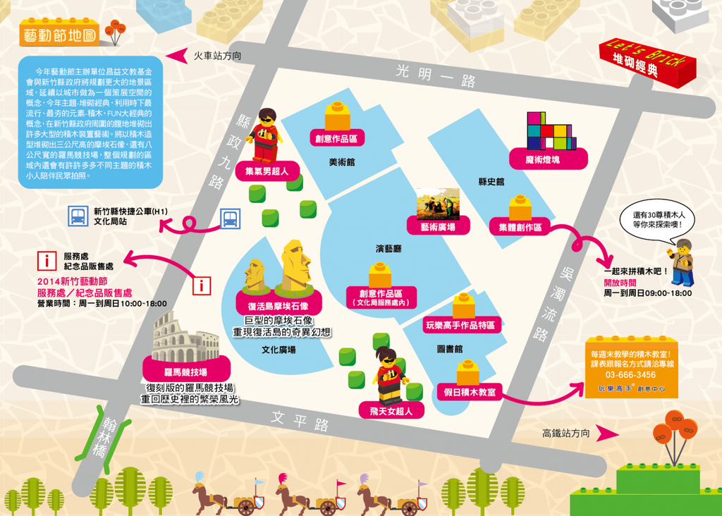 今年主題-堆砌經典,利用時下最流行、最夯的元素-積木,FUN大經典的概念,於9/11~12/14新竹縣政府文化局文化廣場的腹地堆砌出許多大型的積木裝置藝術。