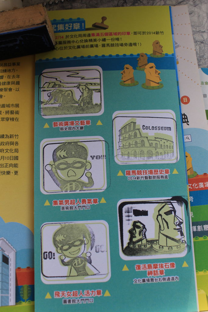 2014新竹藝動節特別設計製作三尊三公尺高的摩埃石像,並以積木的形式表現出來,讓民眾可以與其近距離互動,試著想像著復活島上的巨大摩埃像的出現與神秘的故事喔。