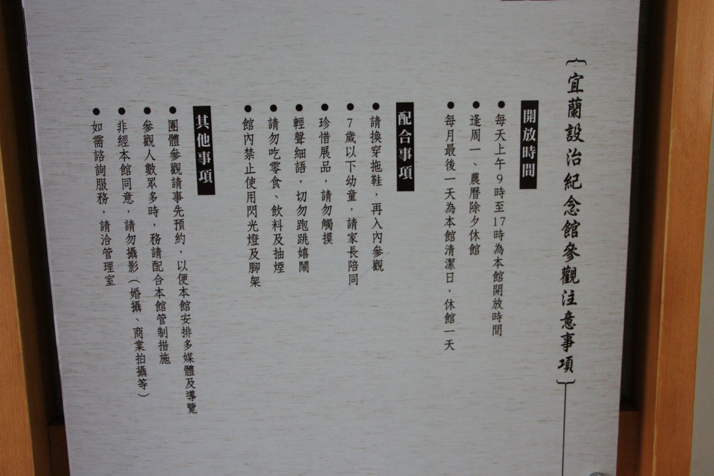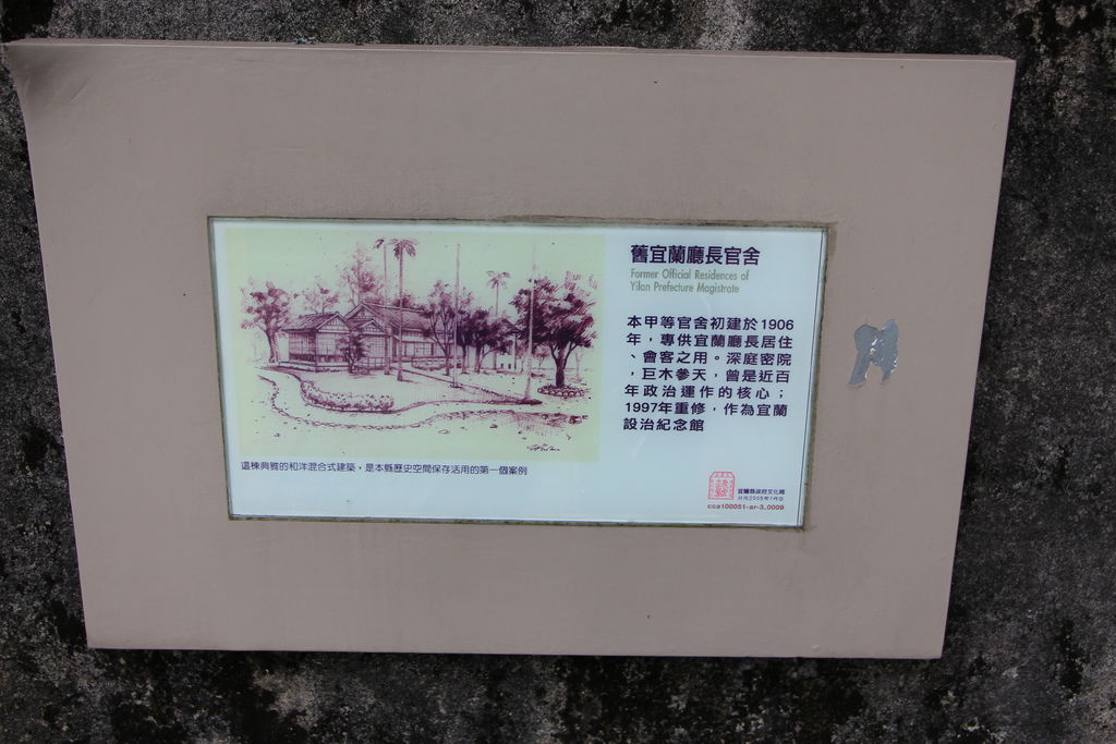 宜蘭設治紀念館是 一棟和洋式建築,建造用的檜木均是當時太平山的檜木,日治時代,這裡是宜蘭郡郡守的宿舍, 光復後這裡由國民政府接收。