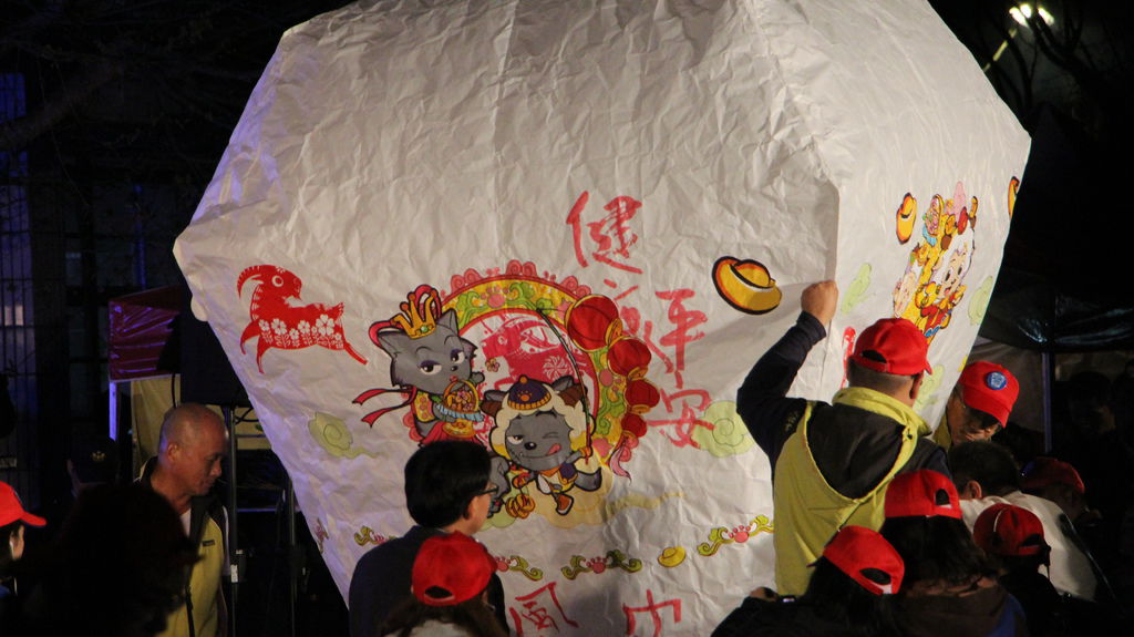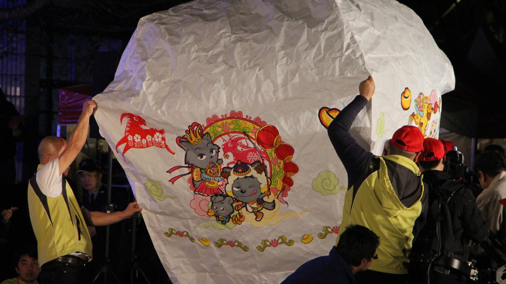 2015新北市平溪天燈節首場活動今(22)日在平溪區菁桐國小登場,適逢羊年到來,活動以「歡樂新北 喜迎羊羊」為主題,超人氣卡通人物喜羊羊家族換上喜氣的新年新裝,不僅登上8呎大型「童趣天燈」,還現身在60盞4呎天燈上,現場喜羊羊齊飛。