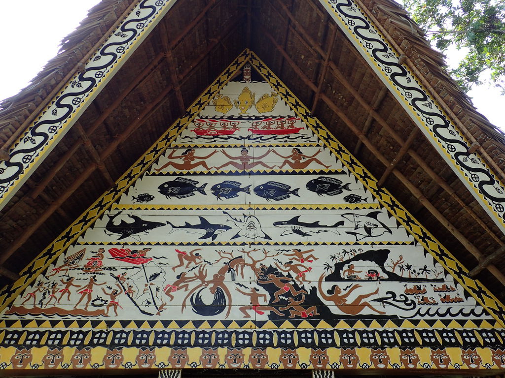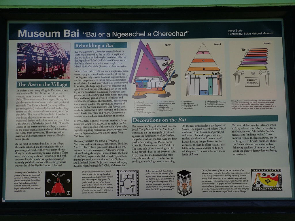 男人會館是,因為這裡是當地男人議事的集會場所而得名,它是由巨大結實的厚木築構而成,而獨特的三角形釘子,便將木頭大樑絲毫不差地 組成骨架。支柱及屋壁上描繪著色彩鮮豔的圖象,帛琉歷史及部落傳奇皆由此流傳著。在會館上所繪的圖案每一個皆有獨特的意義。