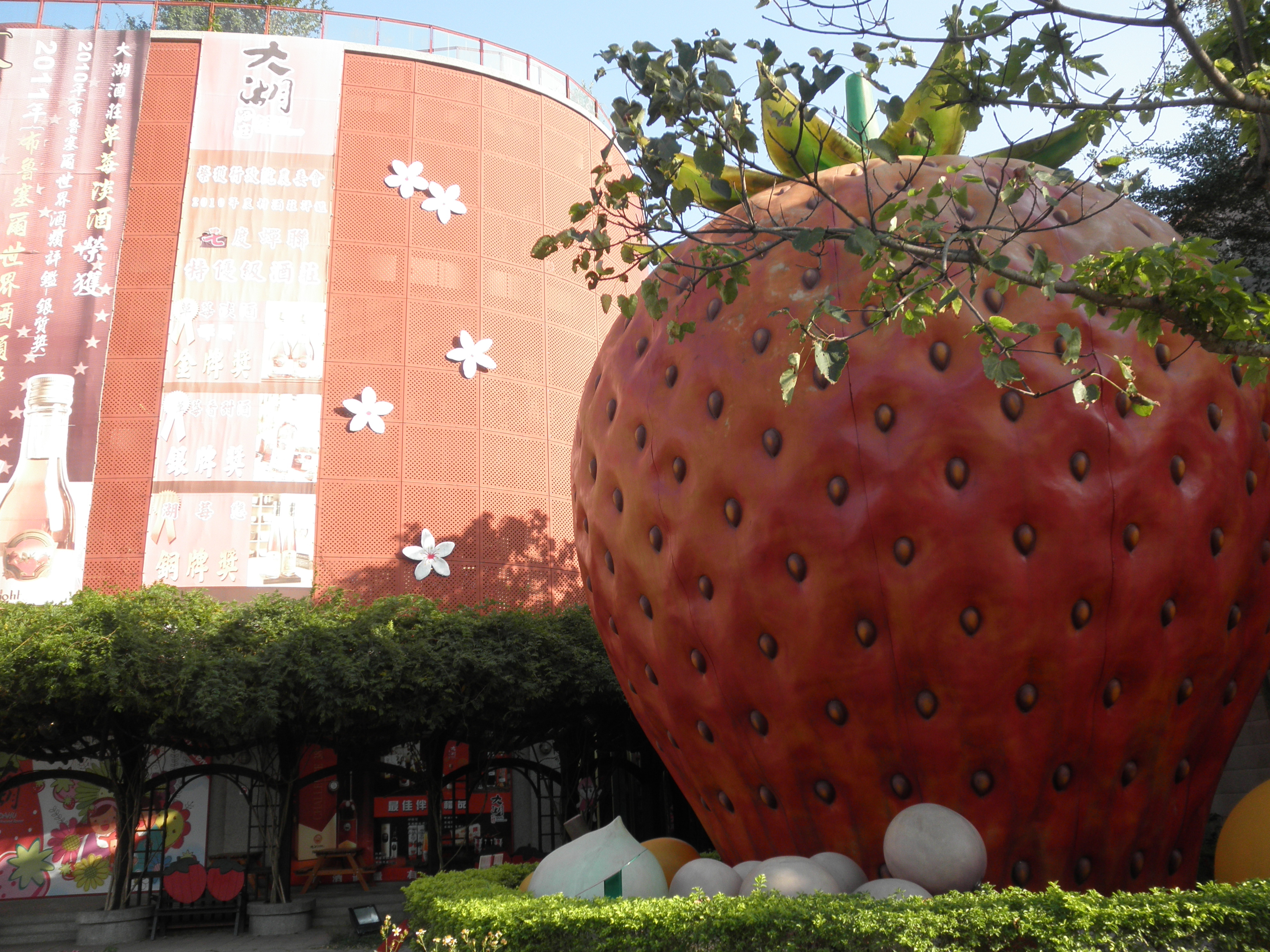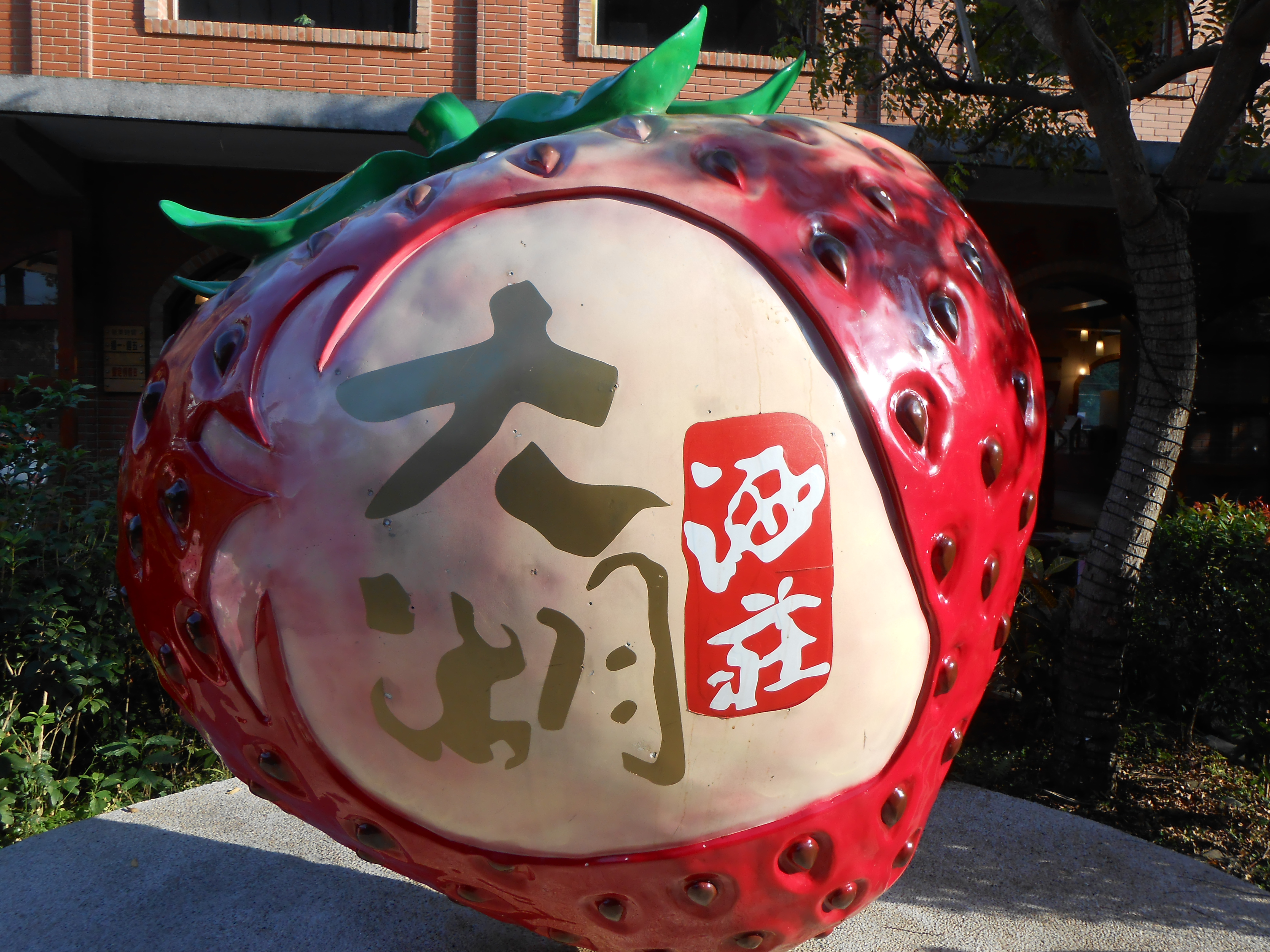 大湖草莓文化館 有一顆大草莓做標誌