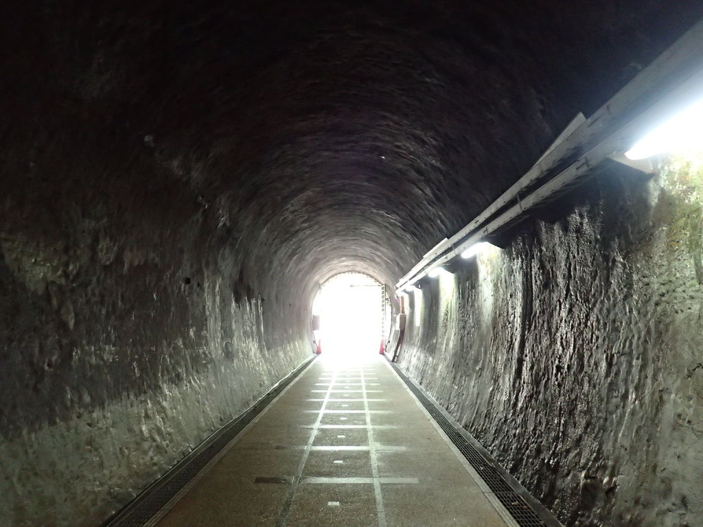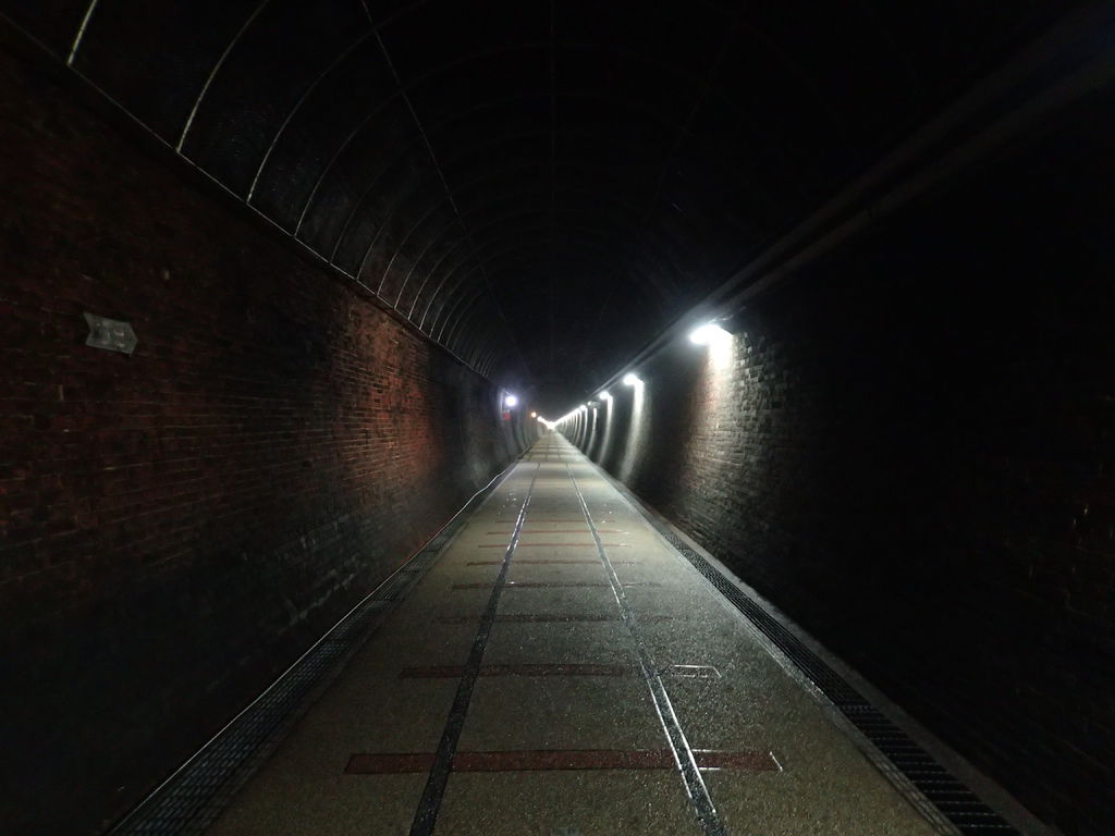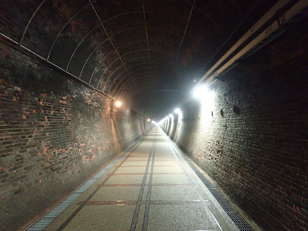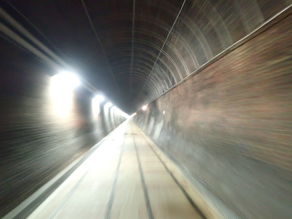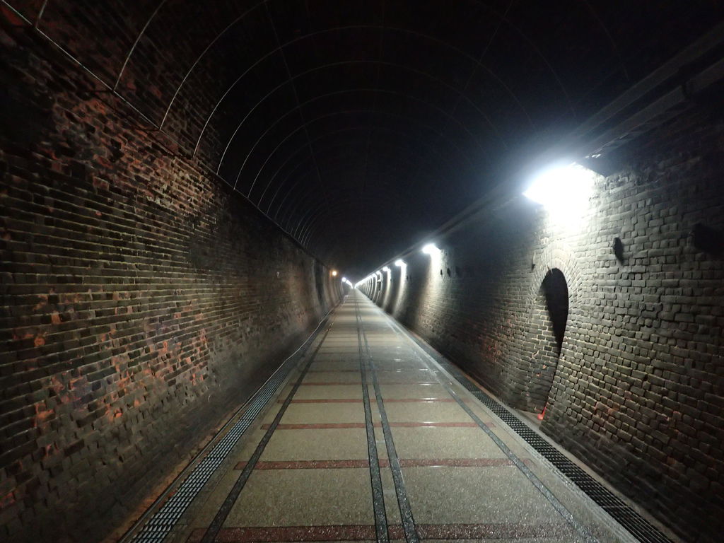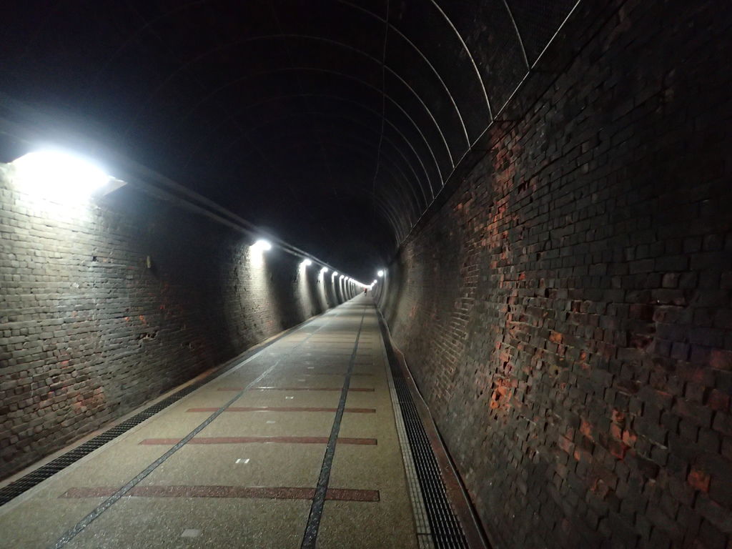 在隧道內騎單車, 感覺蠻奇特的,裏面涼搜搜的。 \(^o^)/