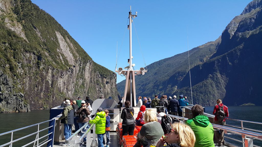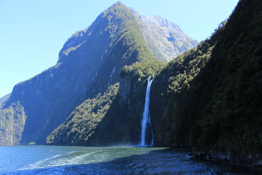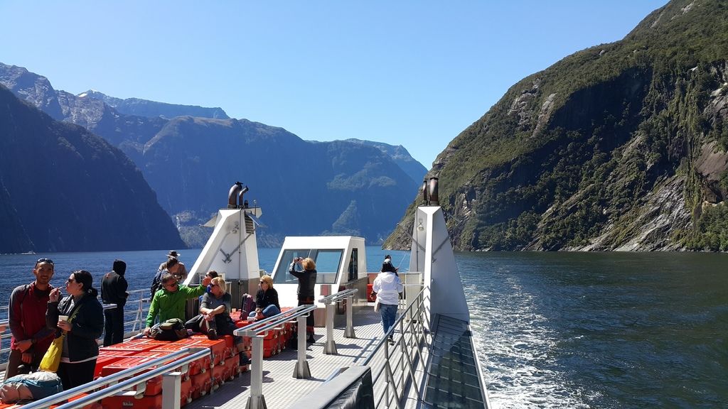 搭乘遊艇遊覽由冰河及海水切割而成的峽灣景觀,其中教冠峰Mitre Peak由海平面向上直拔1692公尺,是直接從海上拔起的世界上最高的獨立岩塊,峽灣兩岸是陡峭的岩壁,無數條瀑布掛在峭壁上,像天河一樣飛瀉下來直入大海,其中最大的波文瀑布落差達165公尺。在峽灣巡弋航程中您有機會觀賞到紐西蘭特有的寒帶動物:如紐西蘭軟毛海豹、凸吻海豚等或峽灣雞冠企鵝或藍企鵝等野生動物。