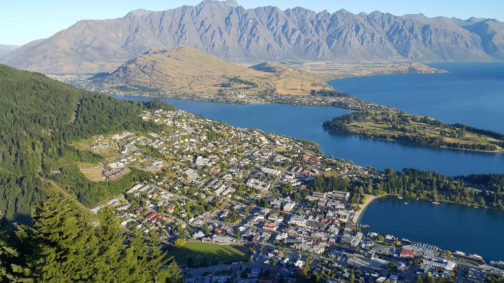位於南阿爾卑斯山脈的尾端,周圍被壯觀的山脈環繞,山腳下則是由冰河切割出來的-Lake Wakatipu瓦卡第浦湖是一座高山湖泊,全長84公里,湖水面積達291平方公里是紐西蘭境內第三大湖,最深達410公尺。從過去三十年間從一個寧靜的湖濱農業小鎮發展成一座全年無休的觀光都市。乾燥的大陸氣候,加上純淨的空氣,使得陽光得以在此千變萬化,創造出別處無法擁有的獨特景觀。