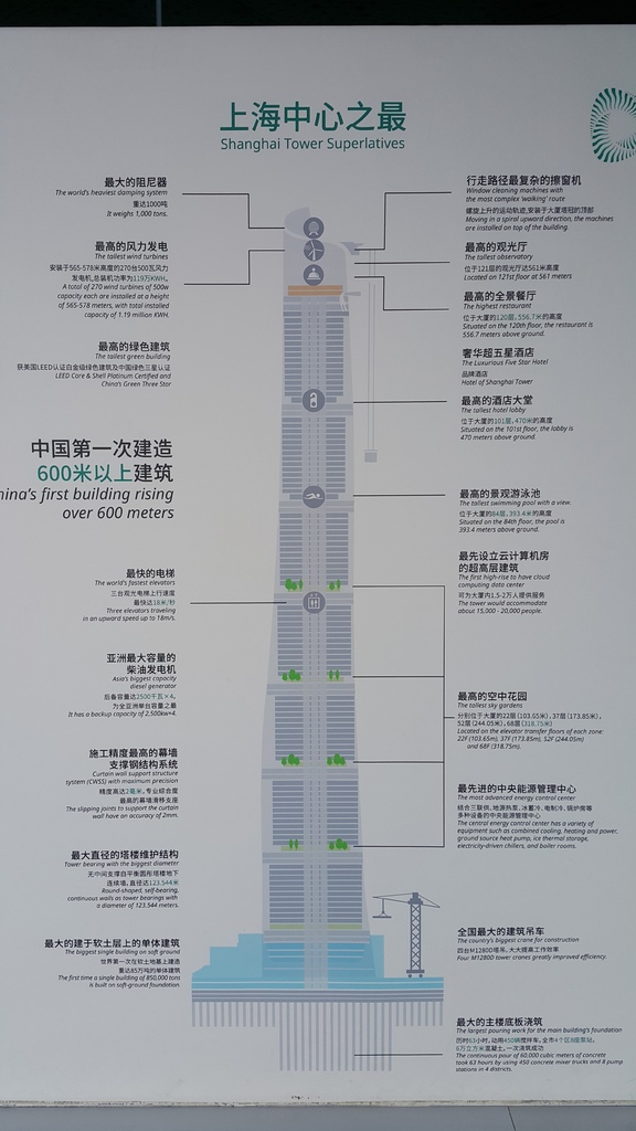 其高度超過附近的上海環球金融中心,當前為世界第三高樓、中國第一高樓、世界最高綠色建築(LEED CS)及擁有全球最高室內觀景台